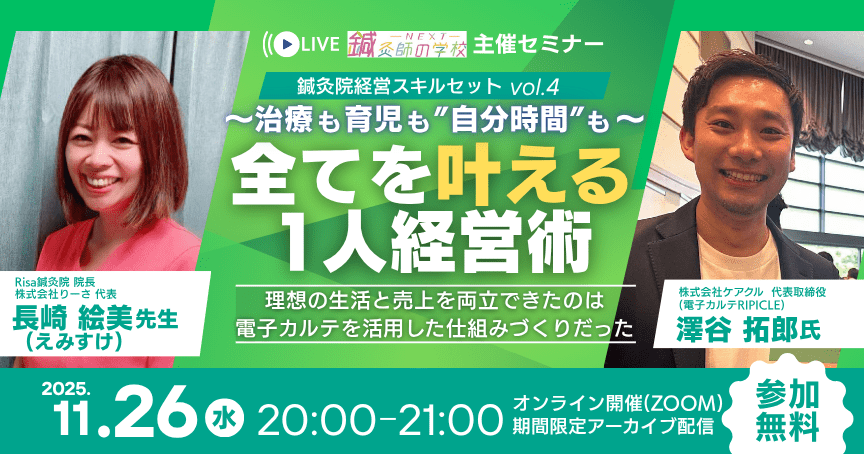 この『鍼灸師の学校NEXT』は、鍼灸師の自己変革を応援する鍼灸師のための生涯学習プラットフォームです。